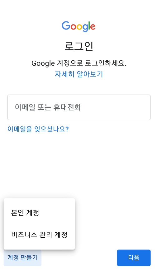 구글 이메일 전화번호 없이 만드는 방법. (스마트폰 계정 추가)