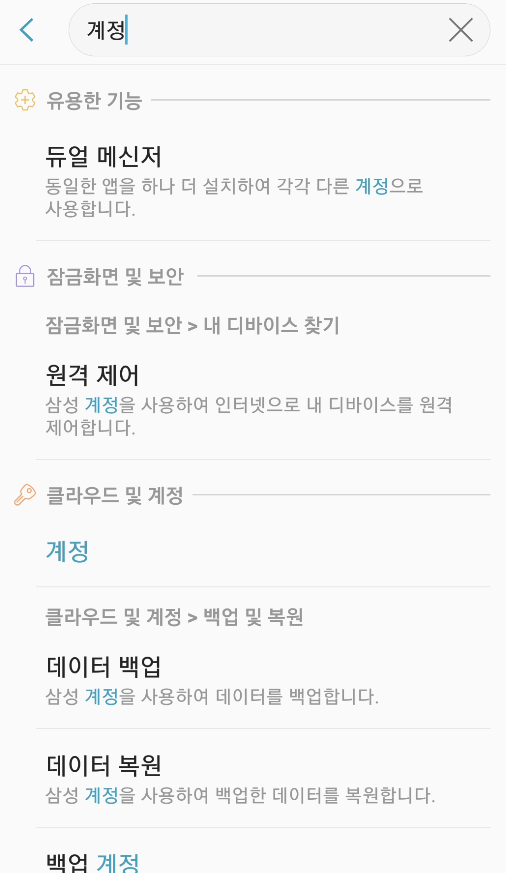 2. 실행에서 제공하는 검색에서 '계정' 검색