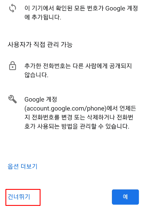11. 전화번호 추가 항복에 '건너뛰기' 선택